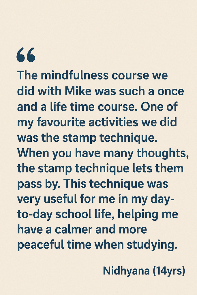 As a parent I believe that Mindfulness is one of the most valuable life skills a young person can learn. By practicing simple yet powerful techniques, children and teenagers can develop the ability to calm their minds, regulate emotions, and build resilience in today’s busy world. It’s not a quick fix, but a long-term investment in their mental health and emotional wellbeing.