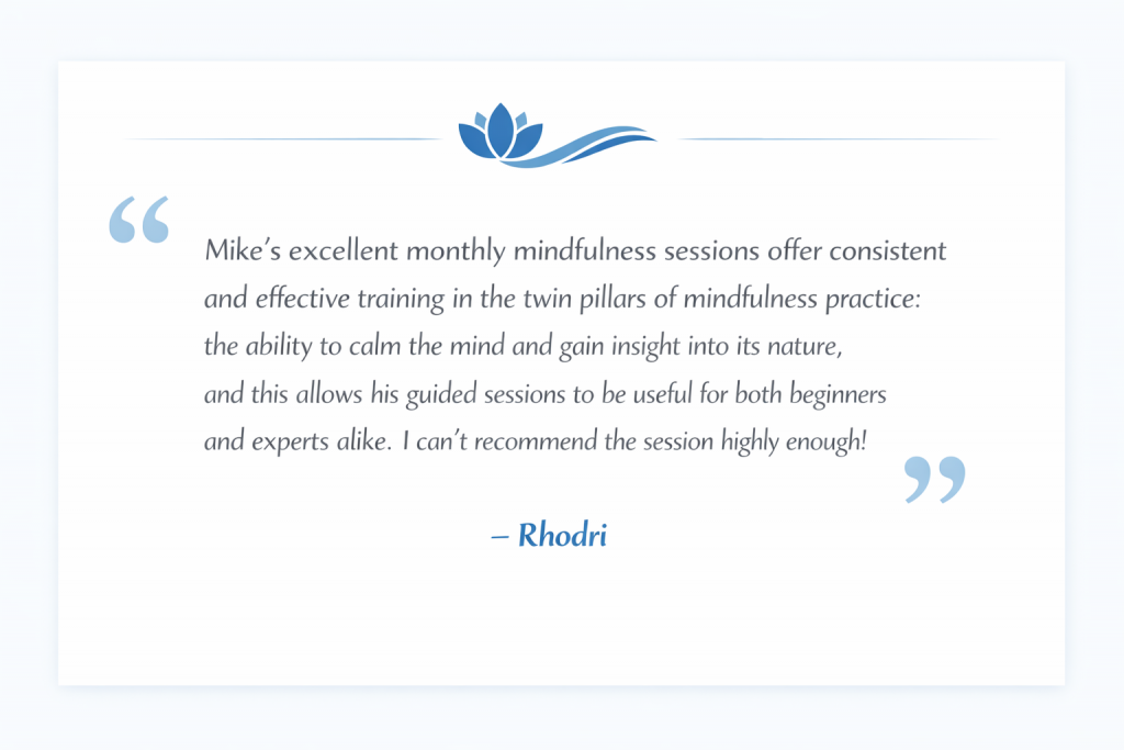 Whether you are completely new to mindfulness and meditation, or already have an established practice, this welcoming community space offers a chance to step out of the busyness of everyday life and reconnect with stillness, awareness, and presence.